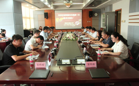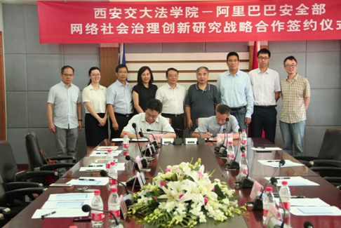 2017年7月22日上午,西安交大法学院与阿里巴巴安全部网络社会治理战略合作签约仪式在乐动官方网页版顺利举行。阿里巴巴集团首席风险官(CRO)刘振飞,安全部资深总监侯金刚,安全部政府事务专家李斌,法务部研究中心副主任顾伟,西安交大副校长席光,校长助理、法学院院长单文华,社会科学处长贾毅华,法学院党总支书记王保民,副院长丁卫,信息安全法律研究中心主任马民虎,副主任王玥,法学院副教授吴关龙共同出席签约仪式,法学院和信息安全法律研究中心部分师生代表参与仪式。签约仪式由法学院党总支书记王保民主持。