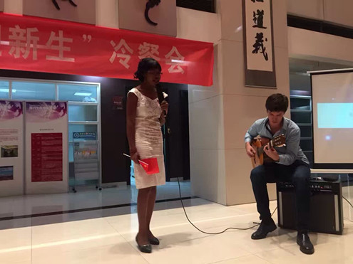 冷餐会上,法学院师生在品尝美味的水果、点心的同时,一起欣赏了师生们带来的精彩表演。来自马里的留学生吴茜同学带来一首充满异域风情的民族歌曲,让同学们领略到不同文化的色彩。来自澳大利亚的留学生多米尼克和研一新生刘静洁分别用英语和法语共同演绎了诗朗诵《再别康桥》。中文经典诗歌在其他语言的演绎下显得别具一格。研一新生唐雅雯身着中国古典服装,向留学生们展示了我国传统舞蹈《惊鸿舞》,令人惊艳。研一新生蒲凯云、刘敏丹、田思艺,本科新生吴彦博分别为大家带来了动听的歌曲,赢得了现场的喝彩与掌声。在欢乐的气氛中,吉兰湘老师用日语为大家演唱的歌曲《我只在乎你》,赢得大家的阵阵掌声;张乃钟老师演唱的豫剧选段《谁说女子不如男》,字正腔圆、韵味醇厚,受到了师生们的热烈欢迎。