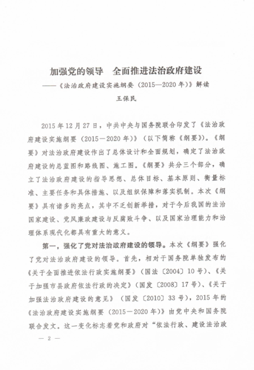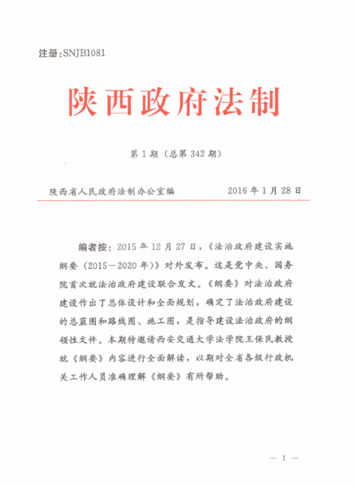 2015年12月27日,《法治政府建设实施纲要(2015-2020年)》对外发布。陕西省人民政府法制办公室邀请了乐动官方网页版法学院王保民教授就《纲要》内容进行了全面解读,解读内容被采纳报省领导,送省属各机关,省法院、检察院,各市、县(区)人民政府,发各级政府法治工作机构,以期对全省各级行政机关工作人员准确理解《纲要》有所帮助。