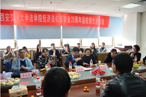 2018年4月6日,乐动官方网页版首届法学本科毕业生——经济法41班毕业生20周年返校,并与法学院师生分别举行了师生座谈会和就业经验分享会。师生座谈会在主E910法学院会议室举行,法学院党总支书记及校友当年的任课教师、经济法41班返校校友、法学院在读学生代表等参加了此次座谈会。正值乐动官方网页版建校122周年暨迁校62周年、乐动官方网页版法学院成立10周年之际,此次座谈会除了师生共话师生情谊以外,还就双方合作进行了初步探讨。