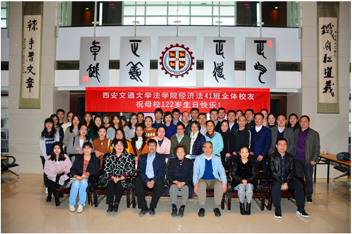 最后,所有参会人员一起拍照留念,纪念这珍贵的时刻。大家共同祝愿交大建校122周年快乐!祝愿交大的明天更美好!祝愿法学院更上一层楼!