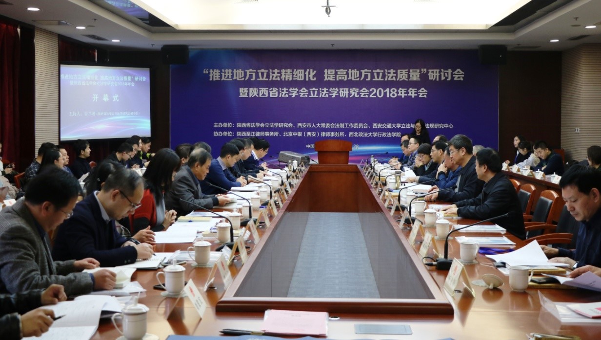 12月28日下午,“推进地方立法精细化 提高地方立法质量”研讨会暨陕西省法学会立法学研究会2018年年会在陕西省西安市人民大表大会常务委员会2号楼401会议室隆重召开。本次会议由陕西省法学会立法学研究会、西安市人大常委会法制工作委员会、乐动官方网页版立法与党内法规研究中心主办,陕西至正律师事务所、北京中银(西安)律师事务所、西北政法大学立法研究中心、西北政法大学行政法学院协办。来自乐动官方网页版、西北政法大学、西北大学、陕西师范大学、西北工业大学、中共陕西省委党校、延安大学、中南财经政法大学、陕西省社会科学院等教学科研单位和来自陕西省委政法委、陕西省人大常委会、西安市人大常委会以及宝鸡、商洛、铜川、榆林、韩城等陕西省其它地市人大常委会、西安市人民检察院、西安市中级人民法院、陕西至正律师事务所、北京中银西安律师事务所等法律实务部门的80余位代表齐聚一堂,围绕“推进地方立法精细化 提高地方立法质量”的主题展开了深入探讨。