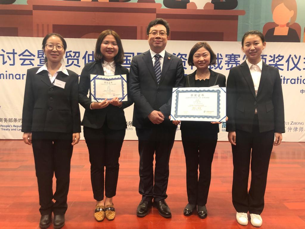 西安交大参赛队伍由2017级研究生张艳、2015级本科生李文鑫、廖倩以及2016级本科生熊平书组成,法学院王朝恩、张生担任教练,单文华教授、李万强教授担任顾问,曾代表学校参加亚太地区第一届外国直接投资模拟法庭的队员王鹏博士和冯韵雅博士也提供了指导。队员们积极认真准备比赛,最终凭借扎实的投资专业知识,优秀的英语表达能力以及娴熟的法庭辩论技巧,获得仲裁员认可,在十四支代表队中脱颖而出,总分排名第四,获得团体二等奖,李文鑫和熊平书同学荣获“优秀辩手”称号。