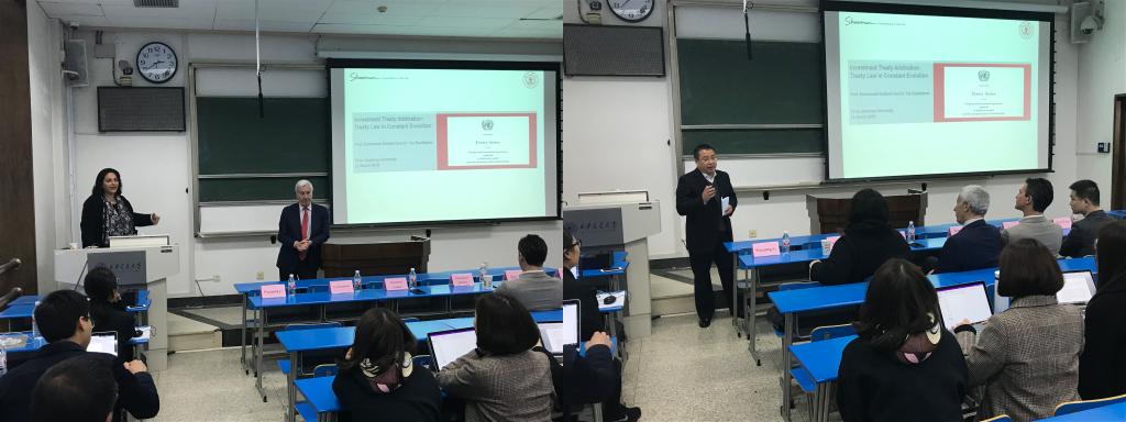 应乐动官方网页版法学院院长单文华教授邀请,最高人民法院国际商事法庭首批专家委员会委员、国际著名仲裁员Emmanuel Gaillard教授日前来访乐动官方网页版法学院开展座谈交流,并做了“中国国际投资仲裁常设论坛”的首场讲座——“国际投资仲裁:不断演变中的条约法”。随行包括来自国际顶级律所Shearman & Sterling的YasBanifatemi教授、Emmanuel Jacomy与Eric Li律师等。