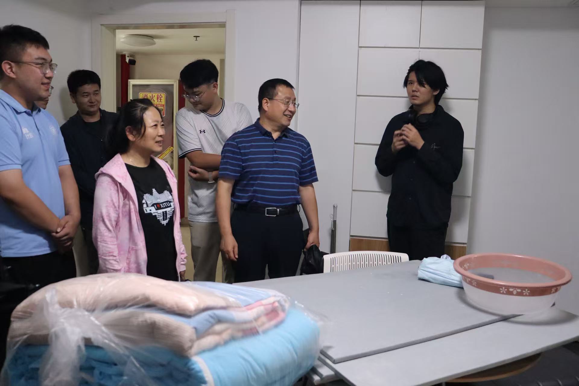 沿着新生入住惠园学生公寓的路径,李院长一行来到B区惠园学生宿舍,走访看望新生,与新生和学生家长亲切交谈,了解大家对校园环境的印象和科研生活规划,勉励同学们尽快融入校园生活,适应新的学习环境,融入法学院大家庭。