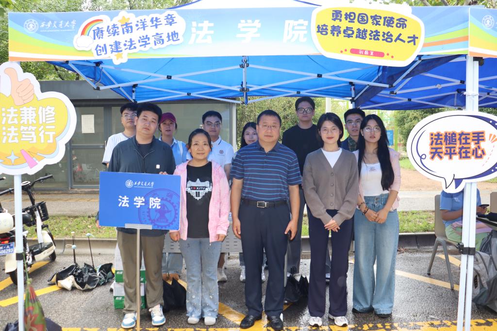 随后,李院长一行来到创新港B区惠园法学院迎新点,向迎新点的志愿者同学们表示问候,对志愿者们的热情服务和无私奉献给予了高度评价,并鼓励大家保持良好的精神状态,为新生提供更加细致周到的服务。